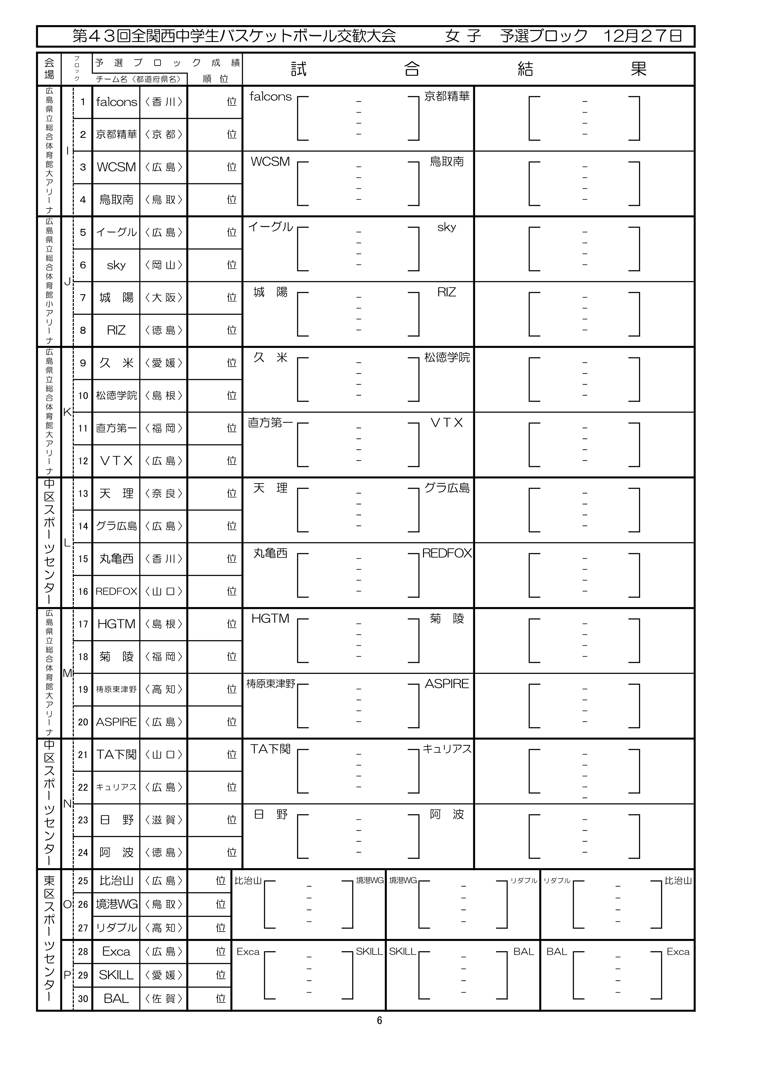 | 第43回全関西中学生 バスケットボール交歓大会 |