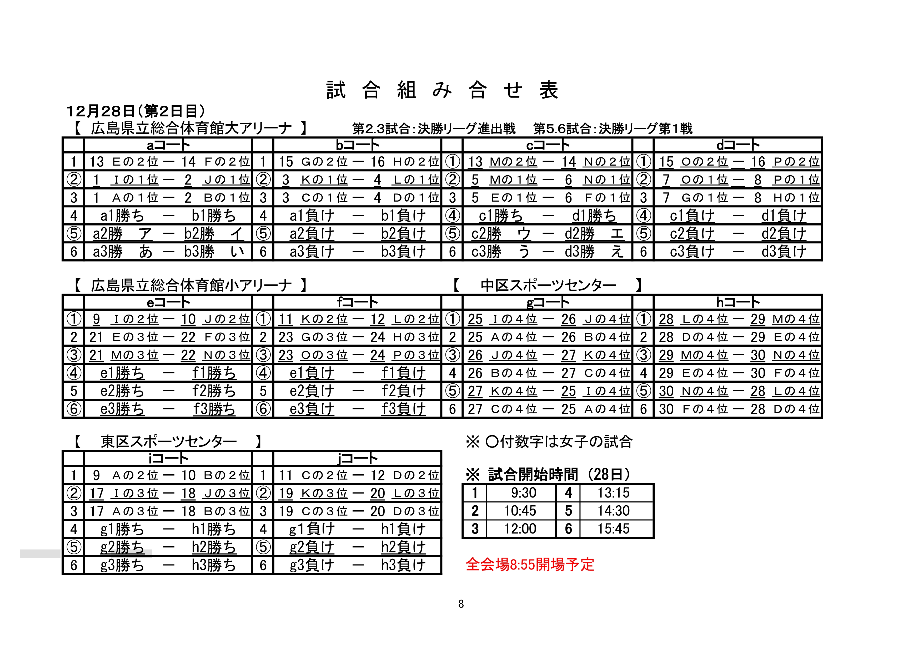 詳細試合日程 | 男子 | 女子 | 決勝リーグ | サイトマップ |
