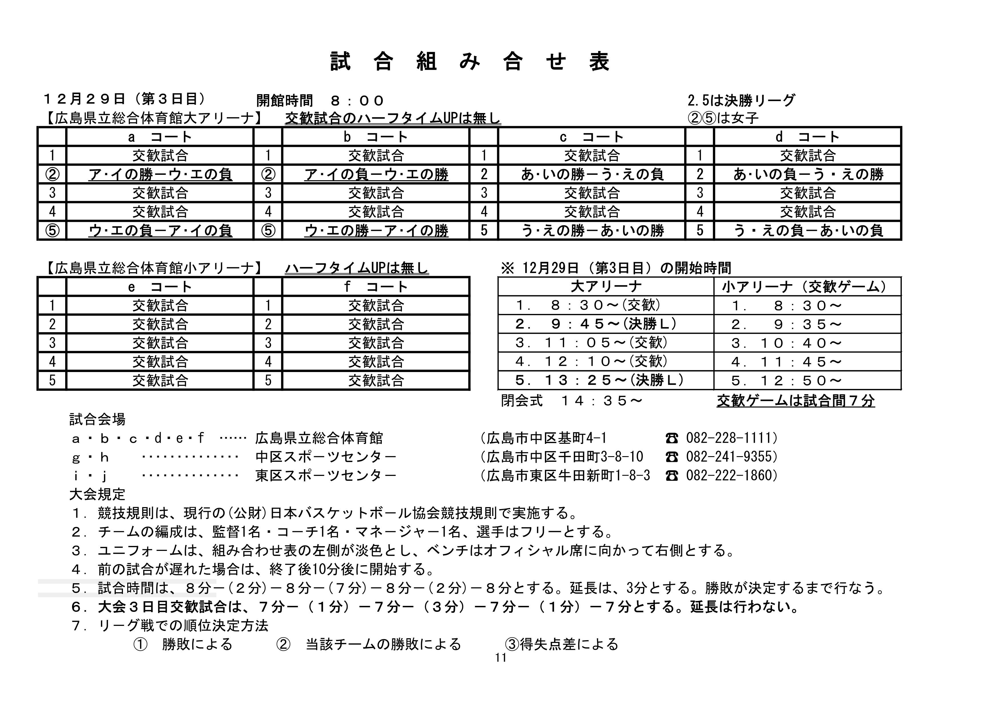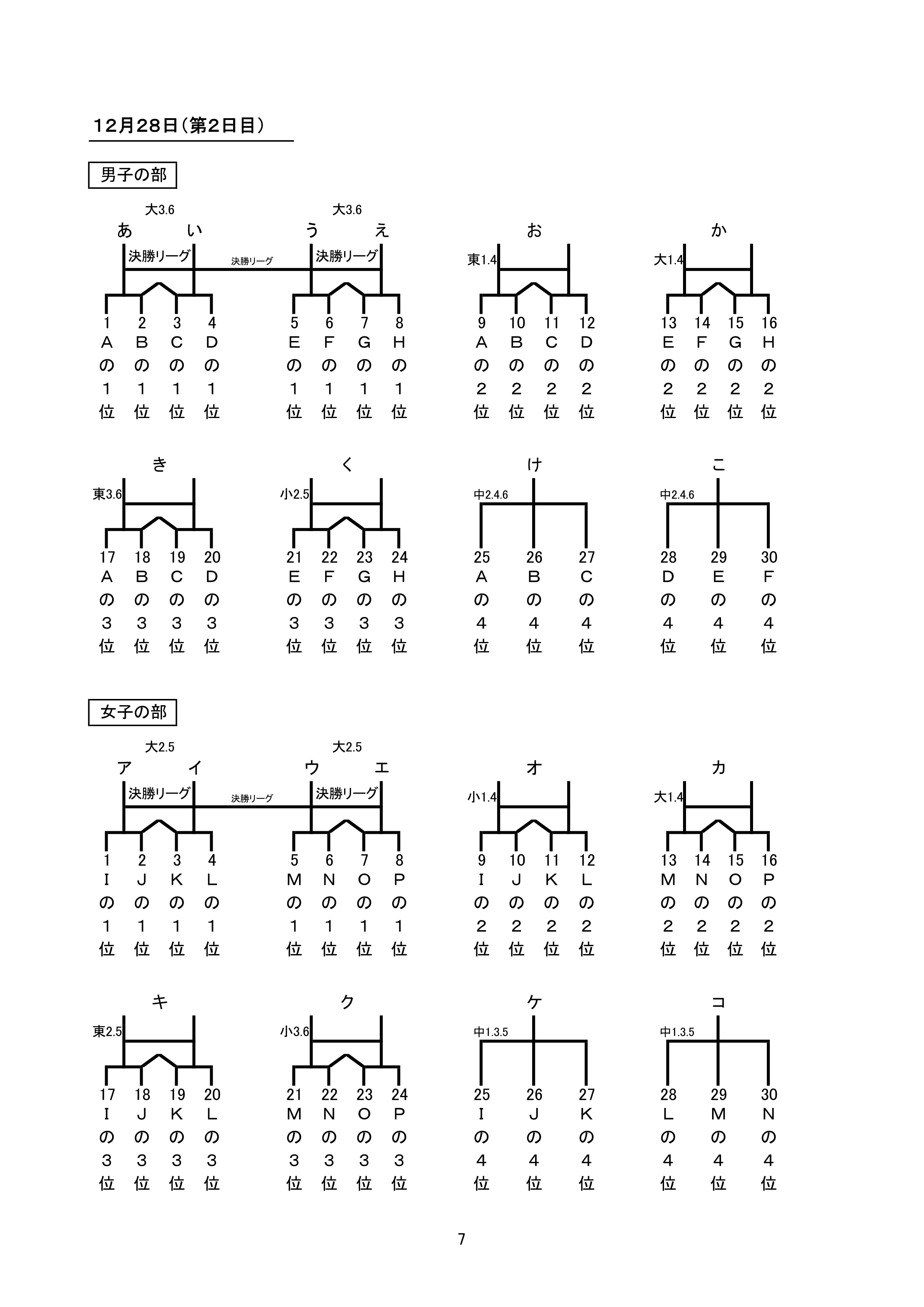 | 女子 12/12組み合わせが変更されています。必ずご確認ください。 出場チーム・大会1日目組合せと結果・大会2日目組合せと結果・決勝リーグ ※うまく表示されないときや、印刷するときには画像をクリックしてください。PDFファイルになります。 |