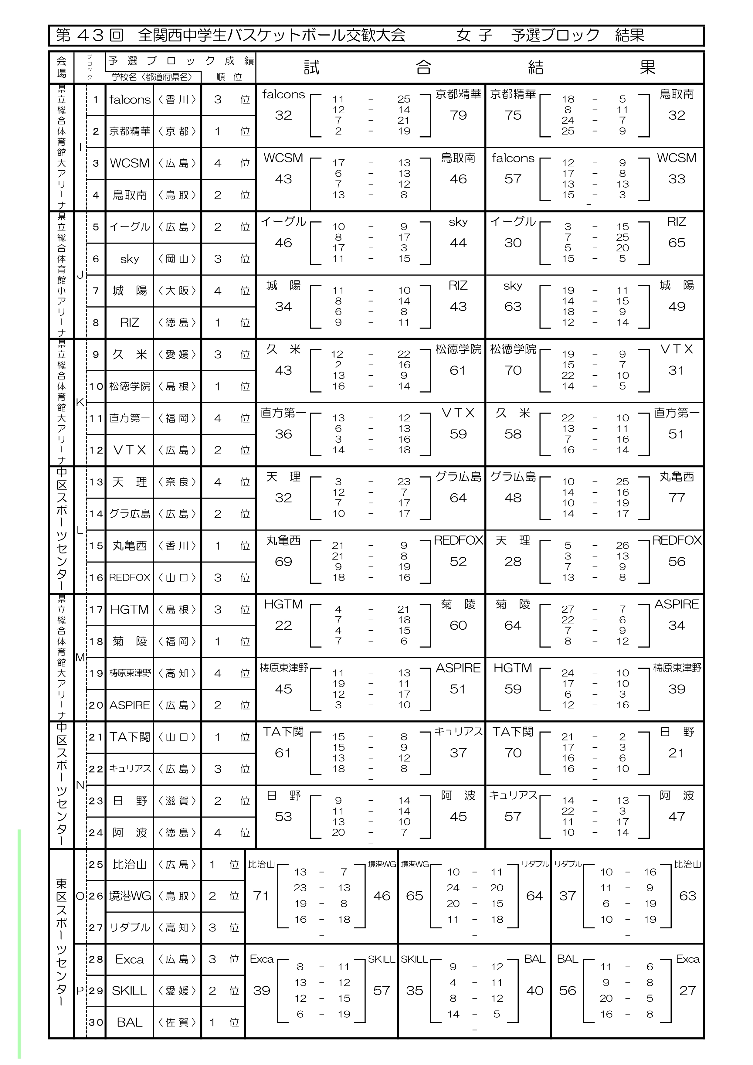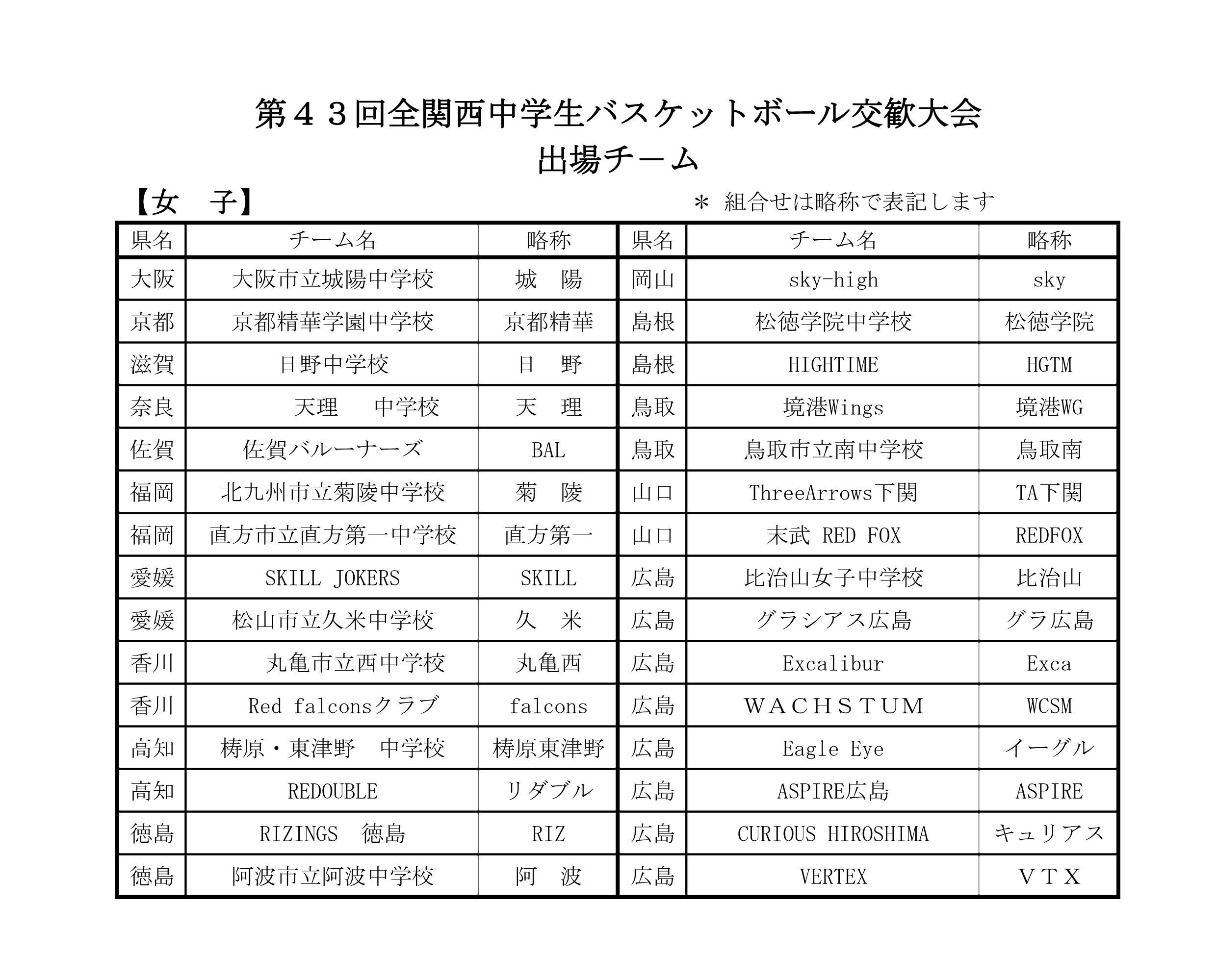 | 第43回全関西中学生 バスケットボール交歓大会 |